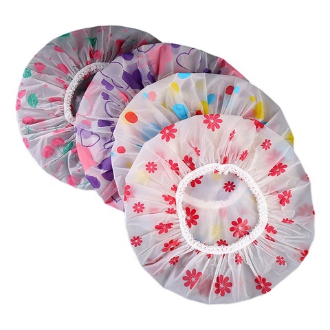 Protector de cabeza de gran calidad, gorros de ducha PEVA personalizados, estampado de champú de plástico, gorros de baño, Envío Gratis por DHL